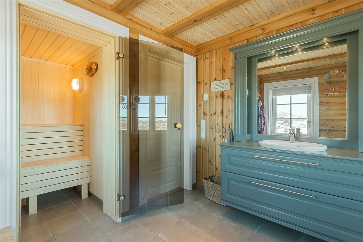 Hytta har 14(15) soveplasser, fullt kjøkken, 2 bad, badstu, "ski toalett" med mer.